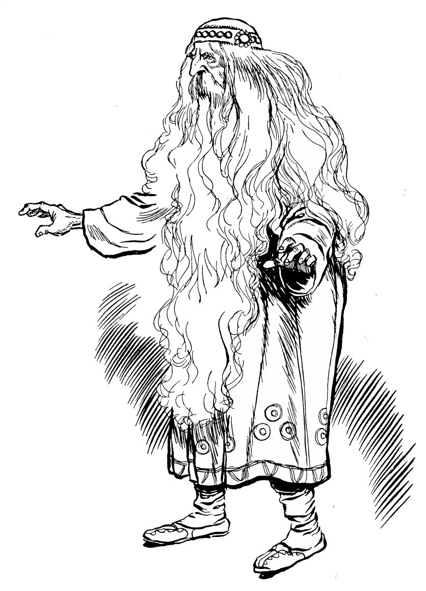 The trailing bundle of rags and sawdust drops from the sorcerer’s hands. Horror-struck, he turns and flees.