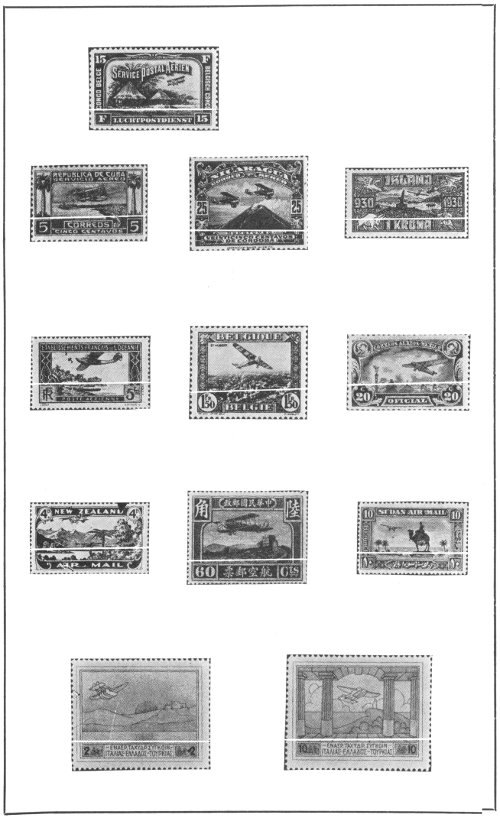 ¶ But to single out stamps here and there does not do full justice to this theme—the myriad perfection of air mail stamps as a pictorial record of a great triumph must be viewed in a more methodical manner, and more broadly, as a grand mural of many events.
