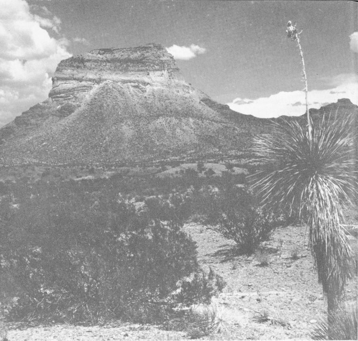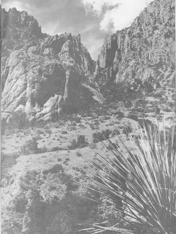 Legendary stories of the Apache Indians and of lost silver mines are prevalent in the Big Bend region. A popular legend of Spanish and Mexican origin is related to Lost Mine Peak. More than one hundred years ago, when Texas was a part of Mexico, a prison was located at San Vincente, on the south side of the Rio Grande. On many occasions the prisoners were assigned to work in a mine located in the Chisos Mountains. None of the prisoners ever returned to San Vincente as those persons in command did not intend to divulge the location of the mine. To this day Mexicans like to 27 relate that on Easter Sunday morning, if a person will stand in the doorway of the San Vicente Mission and wait for the sun to rise, the first rays of the sun will strike a cave in the side of Lost Mine Peak, indicating the location of the mine. Many investigations and diligent searches for the mine have been unsuccessful, and Lost Mine Peak retains the secret of this legend in mute repose. Another phase of the lost mine story is that the miners were about to be attacked by a hostile band of Indians and blasted the opening of the mine, which was covered by an avalanche of igneous rock. The group of miners were pursued and killed by the Indians, carrying with them the secret of the mine’s location.
