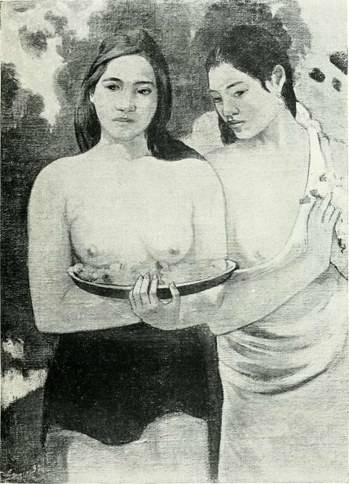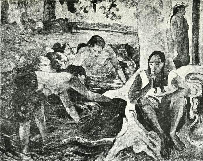 In der Nähe des Flusses Fatüa zerstreute sich alles. Zwischen den Steinen versteckt, kauerten hier und dort Frauen mit bis zum Gürtel aufgenommenen Röcken im Wasser, um ihre Hüften und die vom Marsch und von der Hitze ermüdeten Beine zu erfrischen. So gereinigt machten sie sich, stolz den Busen tragend, über dem der dünne Musselin sich straffte, mit der Grazie und Elastizität junger gesunder Tiere wieder auf den Weg nach Papeete. Ein gemischtes, halb animalisches, halb pflanzliches Parfüm strömte von ihnen aus, das Parfüm ihres Blutes und der Gardenien – Tiaré –, die alle in den Haaren trugen.