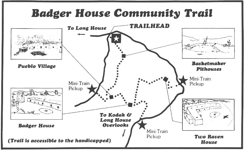 Guidebooks are available at the beginning of the trail and a Ranger will be roving the trail in order to answer any questions or provide assistance. This ruin may be visited anytime between 9:45 a.m. and 5:30 p.m. Visitors taking the 5:00 p.m. tour (last tour) to Long House will not be able to visit Badger House or Step House.