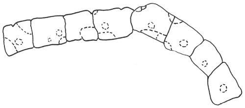 The pattern seen here—a long arc of single-room houses—appeared after 800. Note the sunken floors.