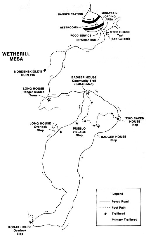 Wetherill Mesa offers a variety of sights, from cliff dwellings to mesa top ruins. From the parking area, walk to the information kiosk and mini-train loading area. There the Ranger will help you plan your visit to the ruins.