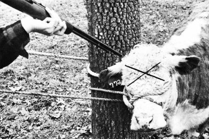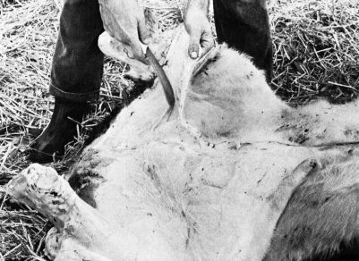 The animal must be killed as quickly and humanely as possible. In a slaughter house the cattle are driven into a knocking pen where they are stunned with a compression gun. On the farm a mechanical stunner is usually not available; therefore, stunning is best accomplished with a well-directed long or long rifle bullet from a .22-caliber rifle. As with the use of any firearms, normal precautions should be taken when stunning the animal.