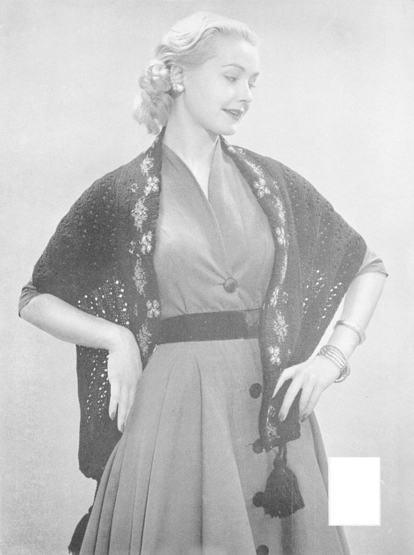 FINISHING: Line stole with taffeta. Sew on sequins as shown in photograph. Sew end fringe in place, catching between taffeta and stole.