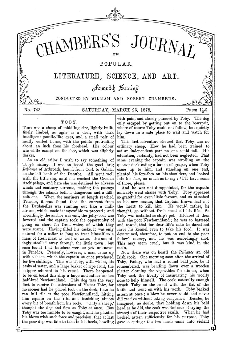 Title: Chambers's Journal of Popular Literature, Science, and Art, No. 743, March 23, 1878