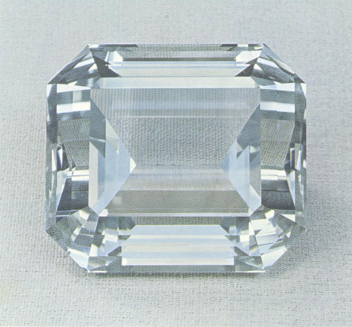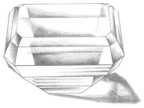 The emerald or step cut provides a large table and a full bottom for the stone. Although the number of crown and pavilion facets may vary, the general pattern is maintained.