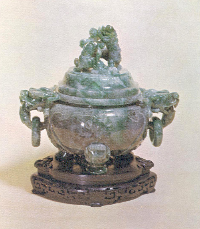 The Chinese and Japanese prize jade highly. In their countries, tradition has assigned to jade medicinal and spiritual values, and has associated with it the cardinal virtues of charity, modesty, courage, justice, and wisdom. As a consequence, these peoples long ago developed the carving of jade as a high art. Among the magnificent Chinese jade carvings in the National Gem Collection are 130 pieces produced mostly during the Ching Dynasty (1644-1912), when the art of jade carving was at its peak. Many of these jades were carved in imitation of the revered bronze ceremonial vessels of ancient times. This collection was presented to the Smithsonian Institution in 1959 by Mr. Edmund C. Monell in behalf of the estate of his mother, Mrs. Maude Monell Vetlesen of New York.