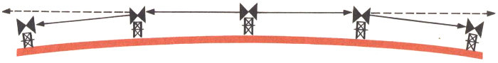 Curvature of the earth requires microwave towers to be about 30 miles apart