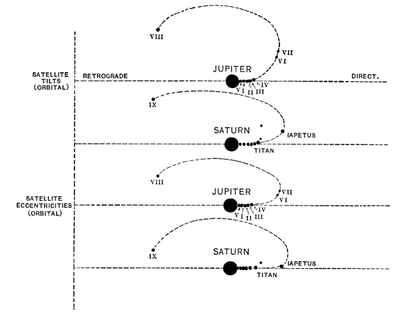 If, therefore, the positions of the satellites have been controlled by the impact of interplanetary particles, the retrograde satellites should be found nearer their planets than the direct ones.