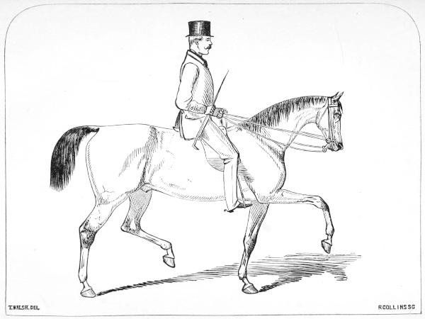 A horse should at all times have sufficient size and power for the weight he has to move. It is an act of cruelty to put a small horse, be his courage and breeding ever so good, to carry a heavy man or draw a heavy load. With regard to colour, some sportsmen say, and with truth, that “a good horse can’t be a bad colour, no matter what his shade.” Objection may, however, be reasonably made to pie-balls, skew-balls, or cream-colour, as being too conspicuous,—moreover, first-class animals of these shades are rare; nor are the roan or mouse-coloured ones as much prized as they should be.