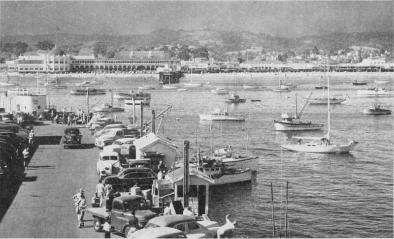 Pleasure craft by scores find anchorage beside Santa Cruz’ Municipal Wharf, where also fishing vessels moor and many an angler drops a line.