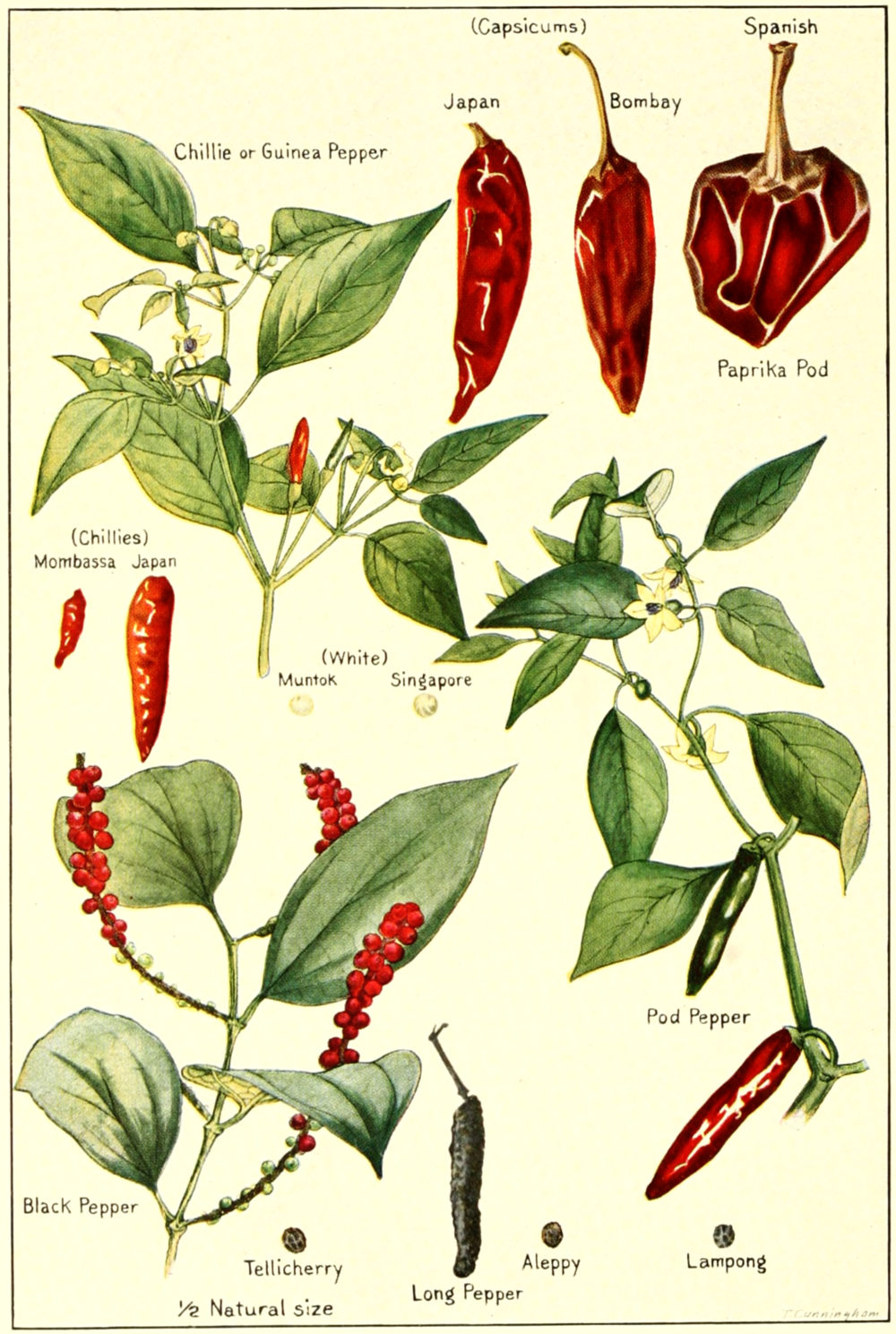 Pepper is the dried berry of the pepper-plant (Piper nigrum), a climbing vine ten to twelve feet high, indigenous to the East Indies, but cultivated in many tropical countries.