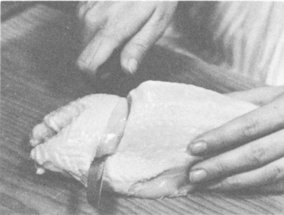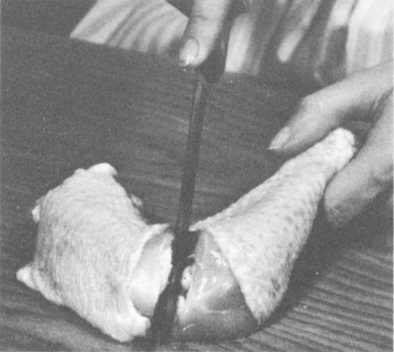 Cut up poultry (p. 16). Remove bone—but not skin—from meaty pieces either before or after precooking.