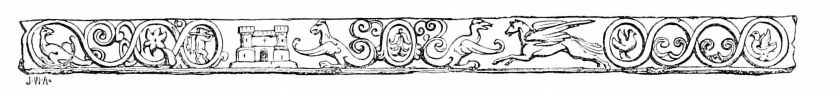 [210] Venusto enim admodum opere ecclesiam à fundamentis constructam laminis æreis, auro undique superducto, capita columnarum et bases flexurasque arcuum ornare fecit mirâ distinctione.—De Invent. Sanct. Cr. Waltham.