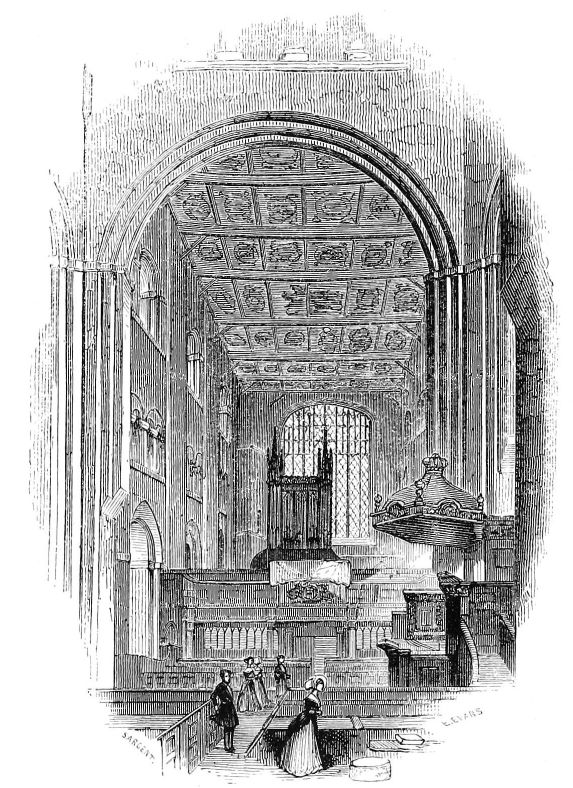 | The Nave of the Abbey Church, Showing the Saxon (or Norman) and Gothic Arches, the Great West Window, &c. | Herman. | Evans. | 83 |