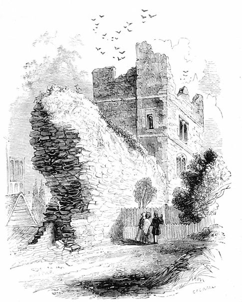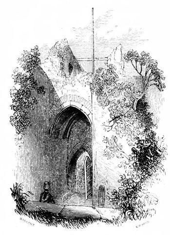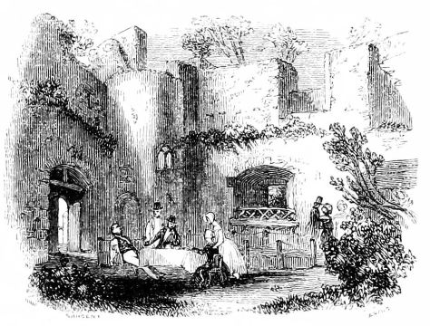 [195] Of both these apartments, as of the White Hall, nothing now remains but fragments of walls and staircases, and a part of two large bow windows; the inner of which, like those of the hall, is picturesquely festooned with ivy.—Notes.