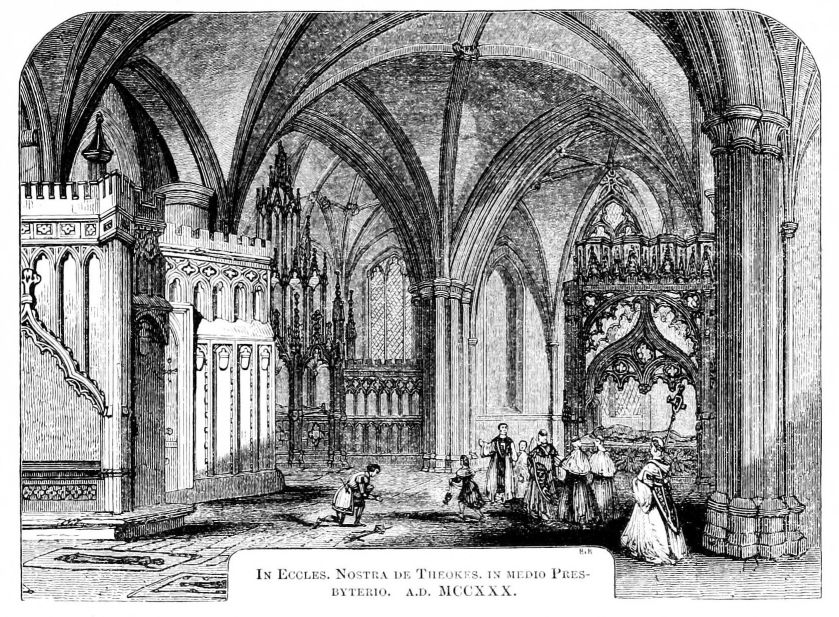 [161] Ibi nempe (Theokesburiæ) Cœnobium Sanctæ Mariæ, Robertus filius Haimonis, super Sabrinam fluvium construxerat et multis opibus tempore Gulielmi junioris Anglorum regis affatim locupletavit. Ord. Vital. Hist. Eccl. 600.