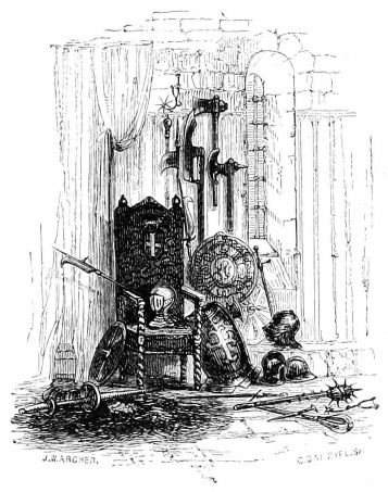 | Inner Gateway during the Parliamentary Siege, with Cavaliers on guard, by torchlight | Allom & Archer. | Jackson. | 24 |