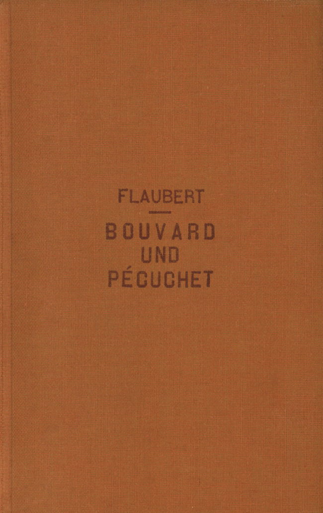 Um sich die Stirn zu trocknen, nahmen sie ihre Kopfbedeckung ab, die jeder neben sich legte; und der kleine Mann bemerkte, daß in dem Hute seines Nachbarn „Bouvard“ geschrieben stand, während dieser leicht in der Mütze des Unbekannten im Rock das Wort „Pécuchet“ unterschied.