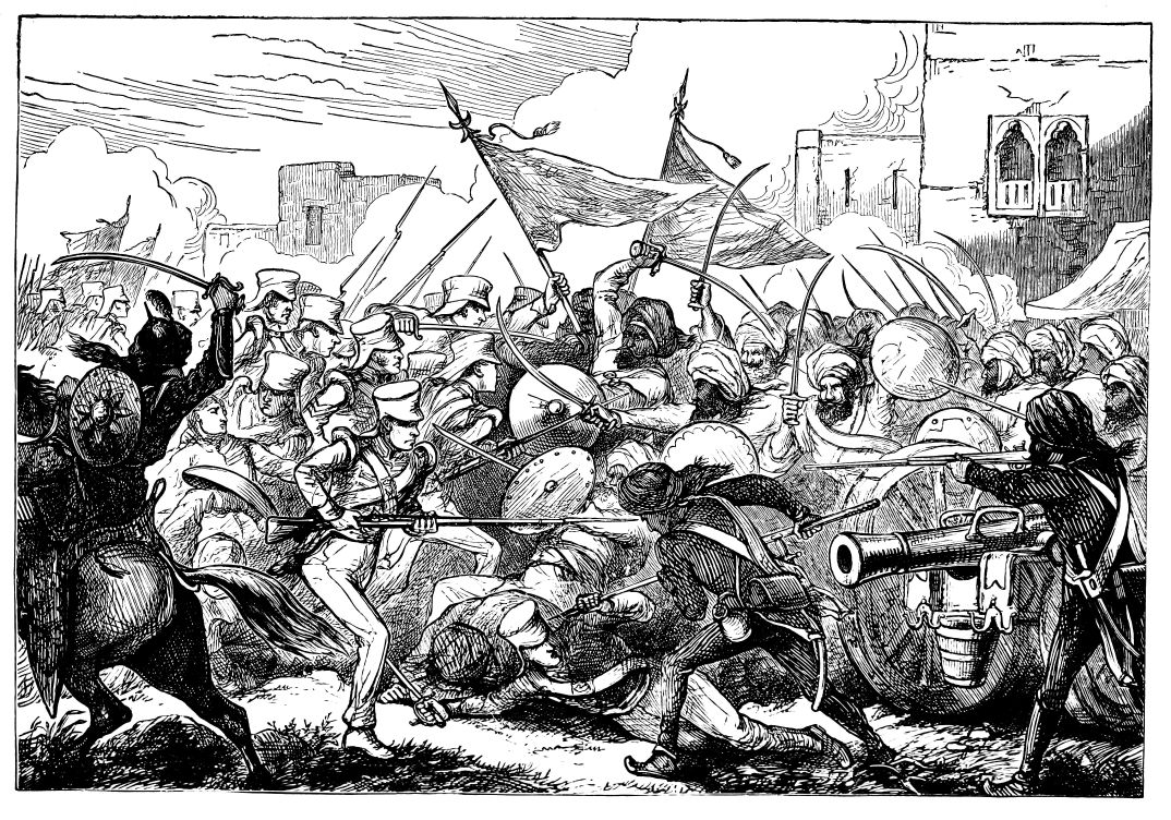 Early in the year the Queen was disturbed by evil tidings from India. Hard fighting was reported from the banks of the Chenab. The Sikhs, it was true, were in retreat; but our victory was a barren one, as we captured neither prisoners, guns, nor standards, and sacrificed two of our Generals (Cureton and Havelock), who fell at the head of their regiments. In losing Cureton, her Majesty lost the finest cavalry officer in her service. The fact was that, though we had conquered, we had not subdued the Sikhs at the end of our first war with them. In April, 1848, a Sikh chief murdered two British officers at Multan. This was followed by a general outbreak, which was met on the whole successfully by the desperate efforts of Lieutenant Edwardes and a mere handful of men. Multan was besieged in June, 1848; but 5,000 of our Sikh auxiliaries deserted to the enemy, and our army had to retreat. We had not enough troops in the Punjab to control the rising, and our auxiliaries under the Maharajah were not trustworthy. On the other hand, the rebel chief Shere Sing, at the beginning of 1849, had 40,000 men under his orders, and once again British supremacy in India was trembling in the balance. On the 5th of March, however, still worse news came to London. Lord Gough, with inconceivable recklessness, had, on the 14th of January, attacked the enemy in a strong position at Chillianwalla with a small British force worn out by fatigue. The conditions of the combat ensured disaster. Our troops, it is true, took the Sikh positions, but during{400}