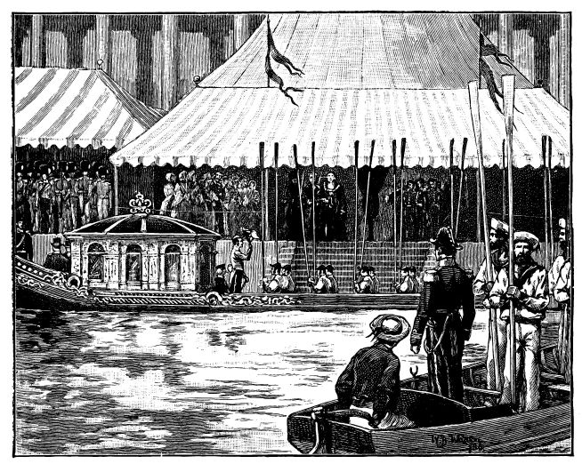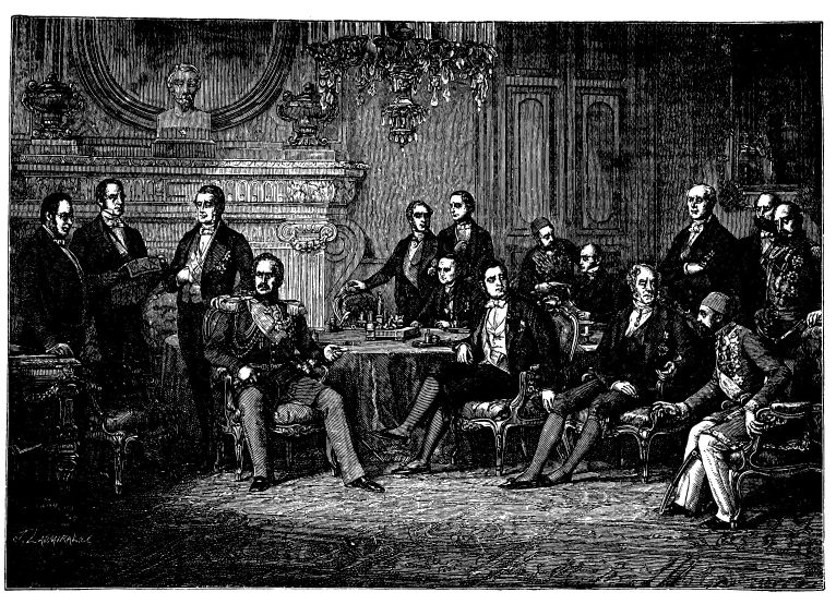 [274] The Treaty of Paris was signed on Sunday, March 30. Each of the fourteen plenipotentiaries originally intended to keep the pen with which he signed it as a memento of the occasion. They, however, yielded to the request of the Empress Eugenie, who begged that only one pen should be used, which should be retained by her as a souvenir. Only one was accordingly used. It was a quill plucked from an eagle’s wing, and richly mounted with gold and jewels.