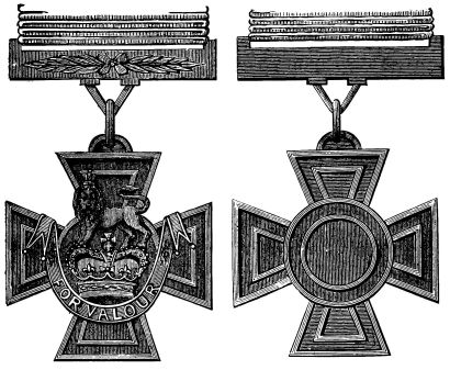 [361] A story used to be told of one Scottish regiment that got into sad disgrace because of the contempt with which they treated the Cross of Valour. A goodly number of Crosses were allotted to it, for it had won exceptional distinction. The superior officers, on being asked to nominate recipients, said, “Oh, hand the thing over to the subalterns.” The subalterns said, “The sergeants would probably like to have the decorations at their disposal.” The sergeants said, “Oh, it would be best to let the men get them,” and the men, with grim humour, selected as bravest of the brave, two pioneers, whose duty it had been to go round with the “greybeards” when the regiment was in action, and serve out the regulation ration of whisky or rum, as the case might be. Was this the reason why no member of the Scottish Brigade figures in the Annual Register’s list of Victoria Crosses given in 1857?