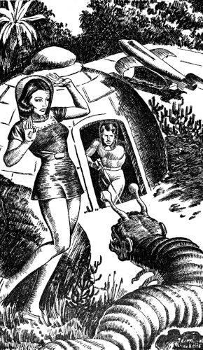 Jean Palmer gasped, and slowly color came back to her white face. Don Denton nodded to himself, strode back to the pilot's seat, slumped indolently into its padded depths. He flicked the switch on the flashlight, pushed it into its wall-clip.