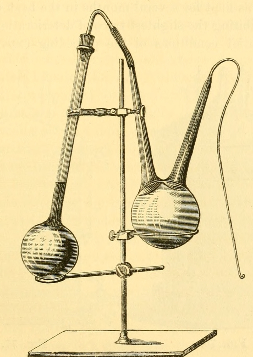 147. To do this, it is sufficient first to fill the curved ends of the stop-cocked tubes of the flasks, as well as the india-rubber tube c c, which connects them, with boiling water that contains no air.