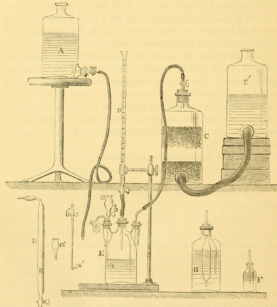 The salt here used for absorbing oxygen was discovered by Schützenberger, and named by him hydrosulphite of soda. It no longer now goes by that name, being called hyposulphite of soda, NaHSO2.