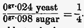 121. We find in M. Raulin’s Note, already quoted, that “the minimum ratio between the weight of sugar and the weight of organized matter, that is, the weight of fungoid growth which it helps to form, may be expressed 10/3·2 = 3·1.” Jules Raulin, Études chimiques sur la végétation. Recherches sur le développement d’une mucédinée dans un milieu artificiel, p. 192, Paris, 1870. We have seen, in the case of yeast, that this ratio may be as low as 4/1.