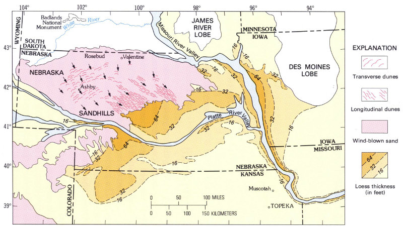 Smith, H. T. U., 1965, Dune morphology and chronology in central and western Nebraska: Journal of Geology, v. 73, no. 4, p. 557-578.