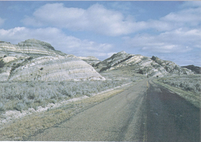 Figure 27.—Badlands of the Little Missouri River in South Unit of Theodore Roosevelt National Memorial Park, N. Dak. View looking northwest from Painted Canyon Overlook along Interstate Highway 94, west of Belfield.