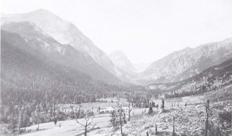Figure 24.—U-shaped, glaciated valley of Big Timber Creek, Crazy Mountains, Mont. Photograph by W. C. Alden, 1921, U. S. Geological Survey.