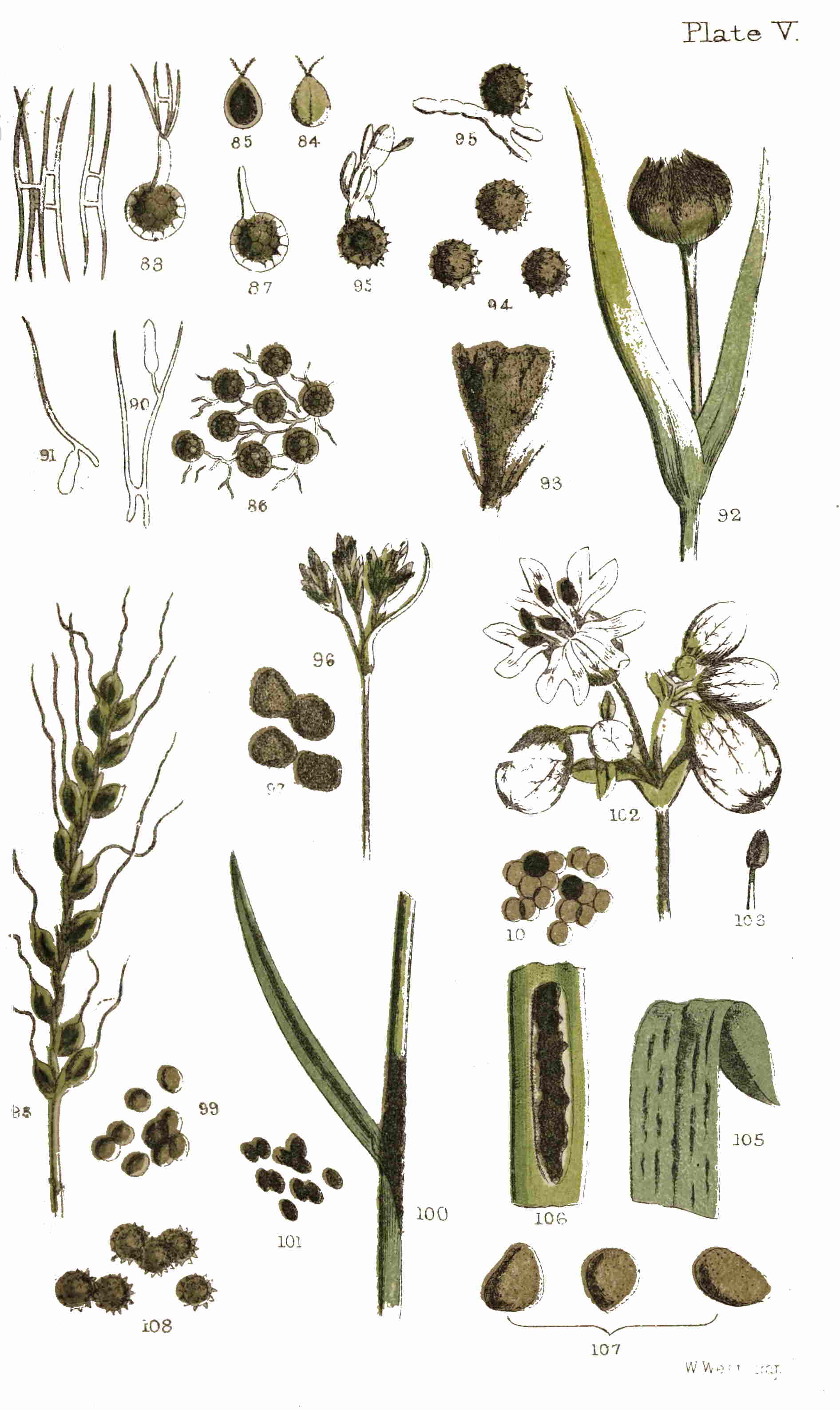 | 〃 | 173. | Spores of Bedstraw brand (Puccinia Galii) × 320. |