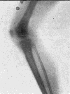 209. Lannelongue, Barthelemy and Oudin’s Experiments. Osteomyelitis Distinguished from Periostitis. Elec. Rev., Lon., Feb. 14, ’96.—In a sciagraph of a person diseased with the former, the surface of the bone was proved to be intact, while the internal parts were destroyed. In the latter disease the changes proceed from the surface to the interior.