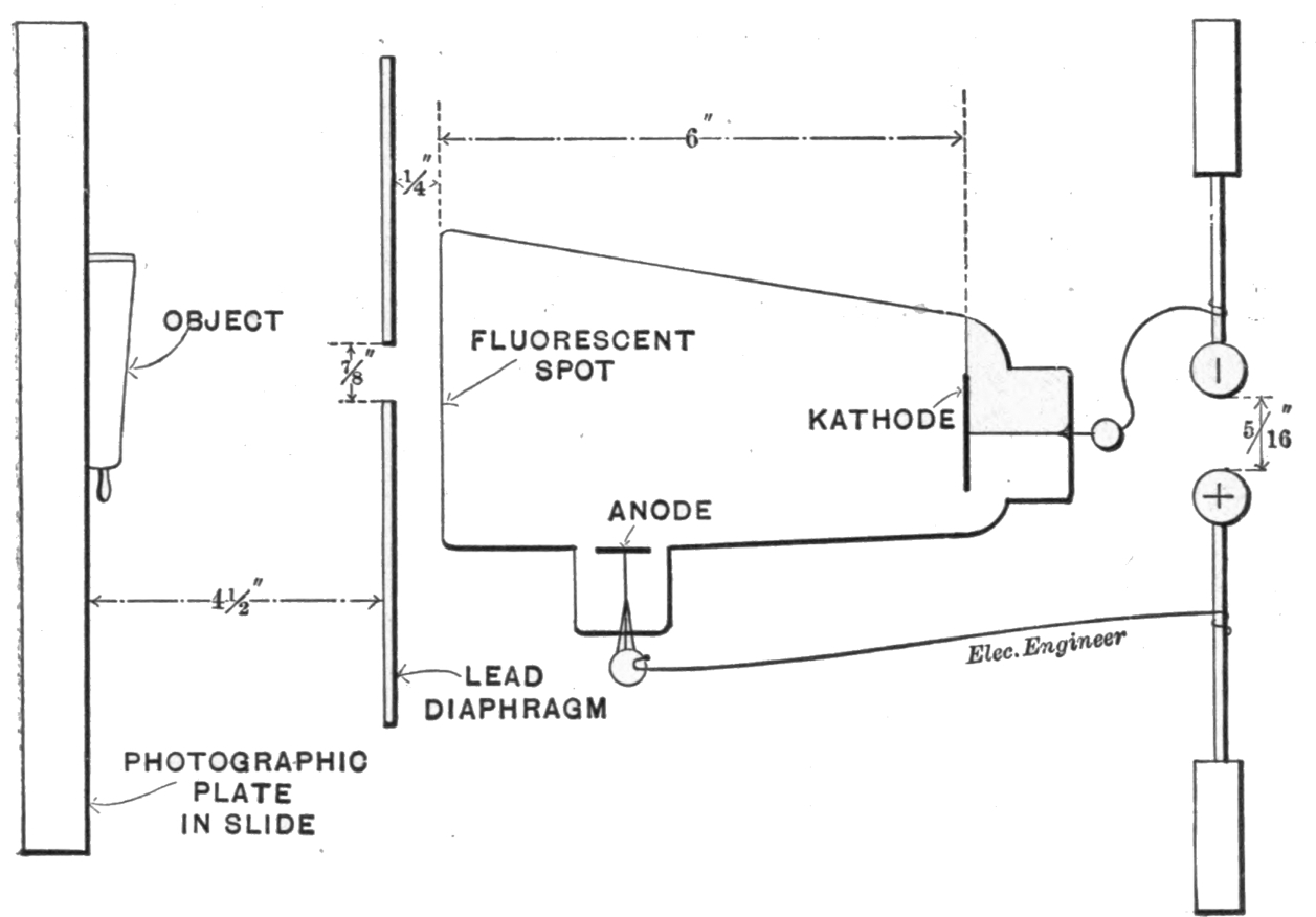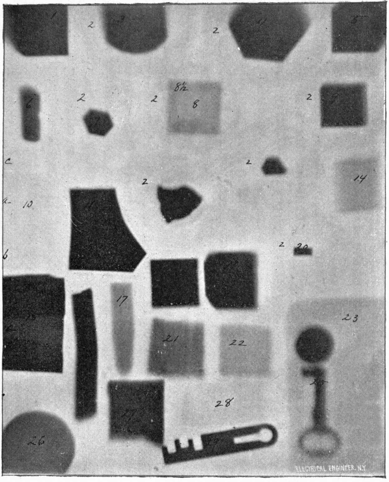 From the time that Roentgen’s discovery was announced, scientists throughout the world have made careful experiments, up to date, in all possible directions, and the time has now come when the number of experiments is rapidly decreasing, only one or two being noted now and then in the scientific press, and consisting mostly in repetition, with occasionally a slight departure, involving a radically new subordinate discovery; but in view of the great number of scientists, and of their high standing as careful experimenters, and because also of their desire to be correct in their inferences, there might seem to be little else to be investigated. Time only will tell. Before passing to the final chapters relating to other matters, a few more experiments are related in the briefest manner.