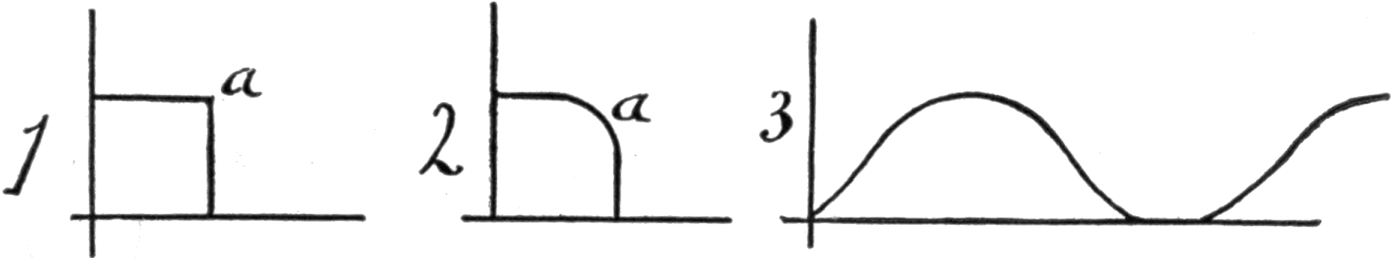 By radiant energy is, of course, meant energy proceeding outward from a source and producing effects at some distant point. There are two well understood ways in which energy may be transmitted,—first, by an actual transfer to the distant point of matter to which the energy has been imparted from the source, as in the flight of a common ball, a bullet, or a charge of shot. In this mode of transmission, it is evident that the flying particles, assuming that they are subject to no forces on the way, will move in straight lines from the source to the distant point. They constitute real rays, diverging from the source; an obstacle in their path, would, if the radiations proceeded from a point, cast a shadow with sharply defined edges.