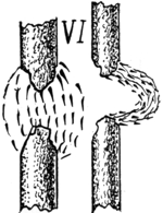 The next supposition naturally is, that the phenomena are due to streams of particles. It has been suggested that the rays may be streams of material particles, but this theory cannot be maintained in view of the fact that the rays proceed, without hindrance, through the highest vacuum. § § 72b and 133, near end. Neither is it consistent with the high velocity of propagation. Molecules of gas could not be propelled through air with any such velocity or to any such distance as X-rays are propagated. Tesla has claimed § 139, that the residual gases are driven out through the glass of the vacuum bulb by the high potential that he employs. This has not been confirmed by other experimenters. It has been observed that the vacuum may be greatly improved by working the bulb, § 121, that is, sending the discharge through it, but experimenters generally have found that heating the bulb impairs the vacuum and restores the original condition. The gases, were, therefore, occluded during the electrical discharge, to be again set free by heating the bulb. § 139b. The rays may be ether streams, perhaps in the form of moving vortices, but of such streams we have no independent knowledge, and can only determine by mathematical analysis, what their characteristics should be. They would not suffer refraction, and would not produce interference nor diffraction phenomena. Whether they would do what the X-rays do, go through the flesh and not through bone, through wood and not through metal, excite fluorescence, or affect the photographic plate, cannot be said. There is evidence that there are at least two kinds of X-rays, § 152, differing in penetrating power, though perhaps not differing in other respects.