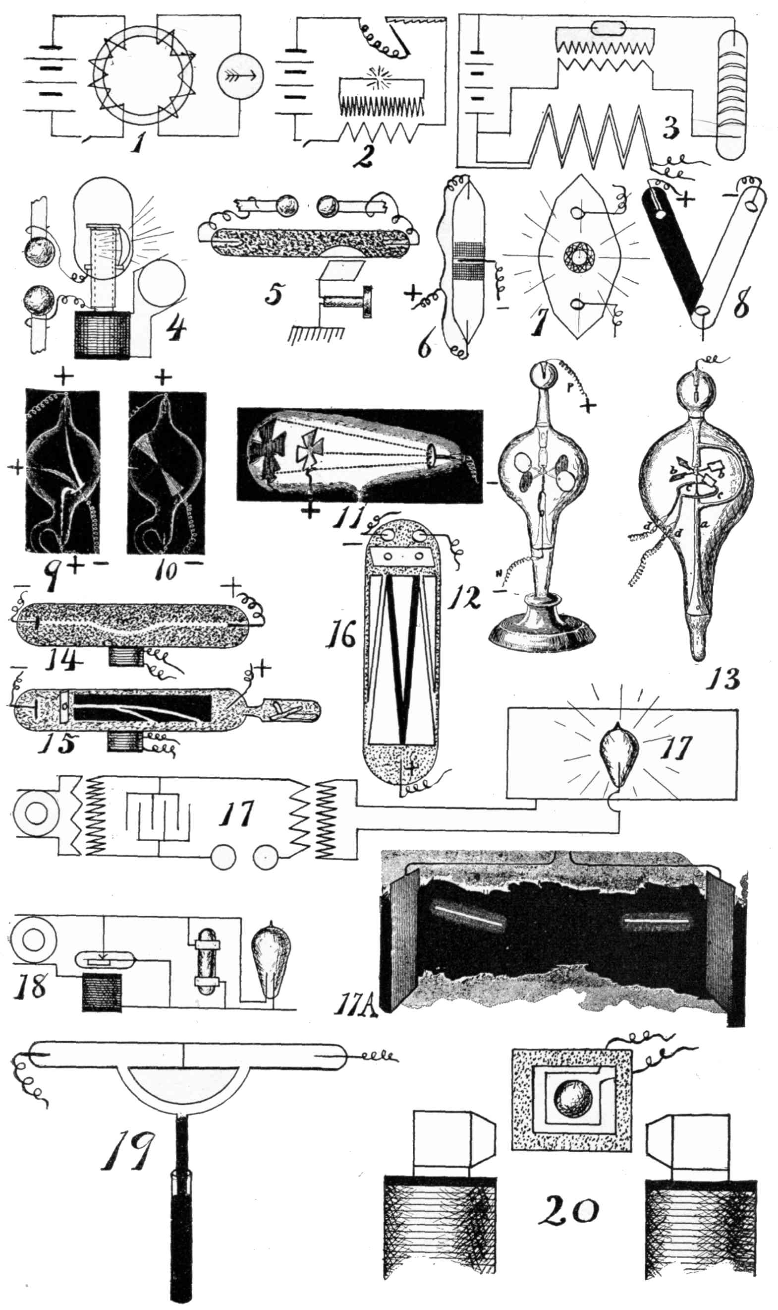Fourthly, expert physicists and electricians, professors, etc., need something that the above classes do not, and this is the reason why the author has not assumed the burden of carrying any line of thought or theory from the beginning to the end of the treatise, nor has he made the book in any way a personal matter by criticising experiments, nor even by favoring the views of one over the other, unless it is in an exceptional case here and there; but in each instance the investigator’s name is given, and that of the publication in which the account may be found, so that the scientist may refer thereto to test the correctness of the author’s version of the matter, or to learn the nature of the minute details and circumstances.