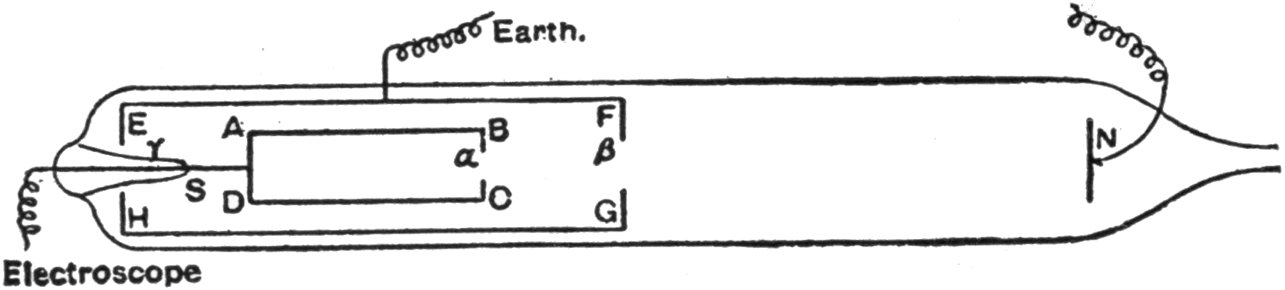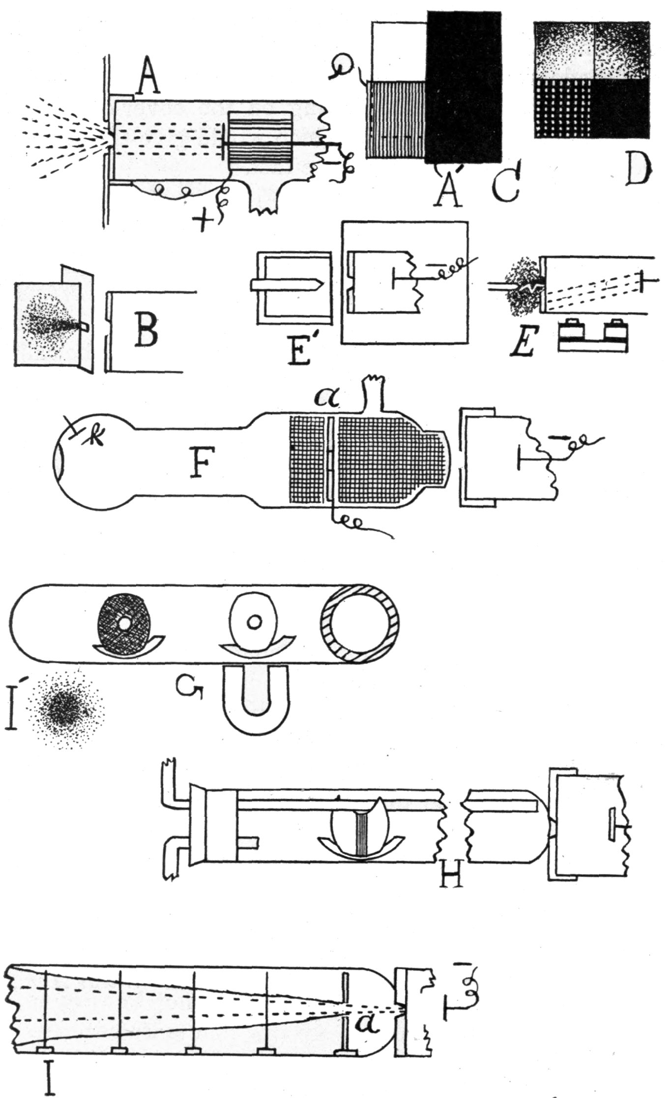 168. Prof. Oliver J. Lodge, F.R.S., reported in The Electr., Lon., June 5, ’96, further detail experiments in the line set out in § 113. He proved conclusively, as stated by the editorial in The Electrician, that a positive charge has increasing effect upon the ray-emitting power of the surface exposed to the cathodic radiation.