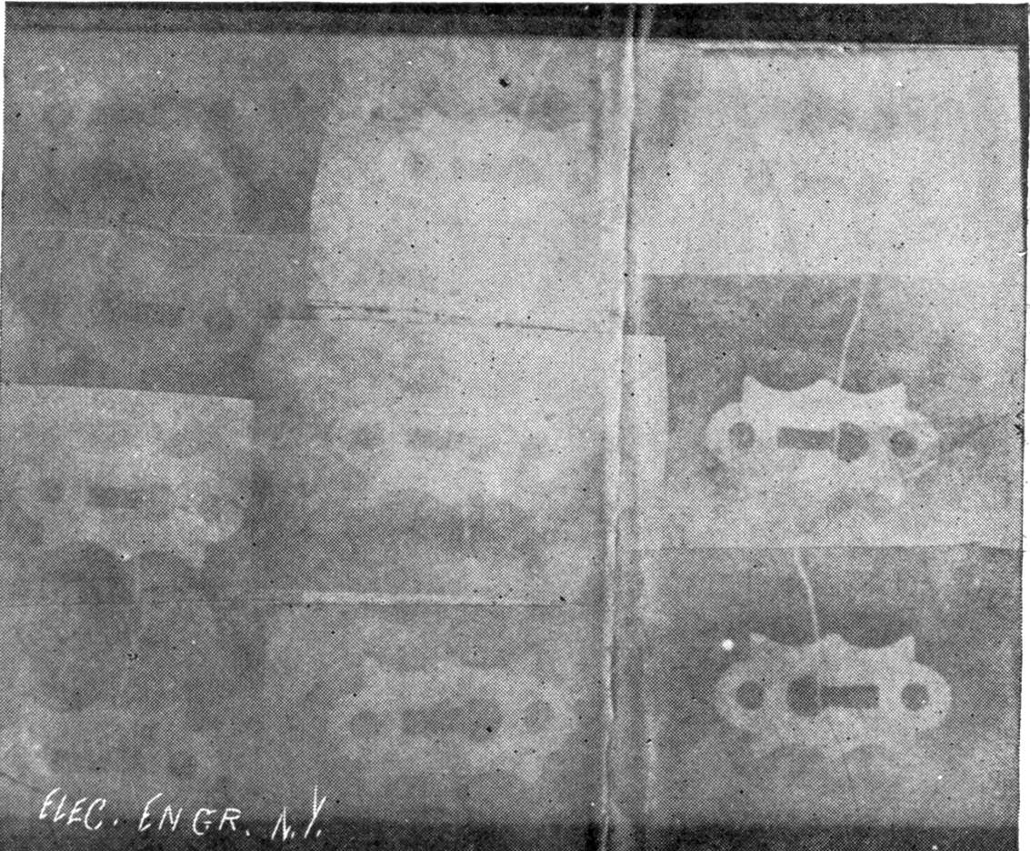 205. Morton’s Experiment. Diagnosis. Elect. Eng., N.Y., June 17, ’96. Lect. before Odontological So., N.Y., Apr. 24, ’96; repeated in Dental Cosmos, June, ’96.—Dr. William J. Morton, of New York, made several important examinations of the human system by the use of X-rays.