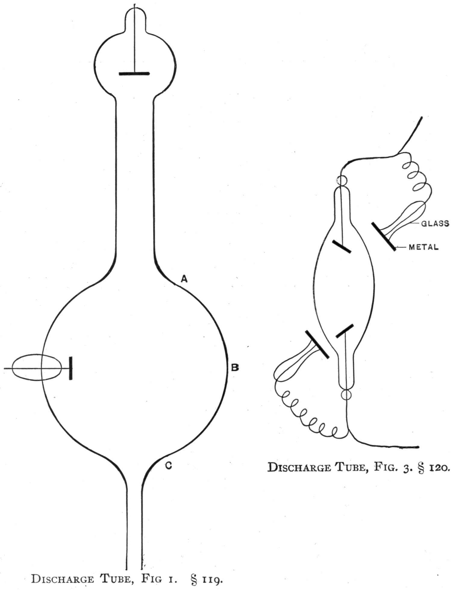 | 46. | Motion of Striæ Checked at the Cathode. Tube, 50 ft. Long. The Anode the Starting-point. | Thomson, J. J. |