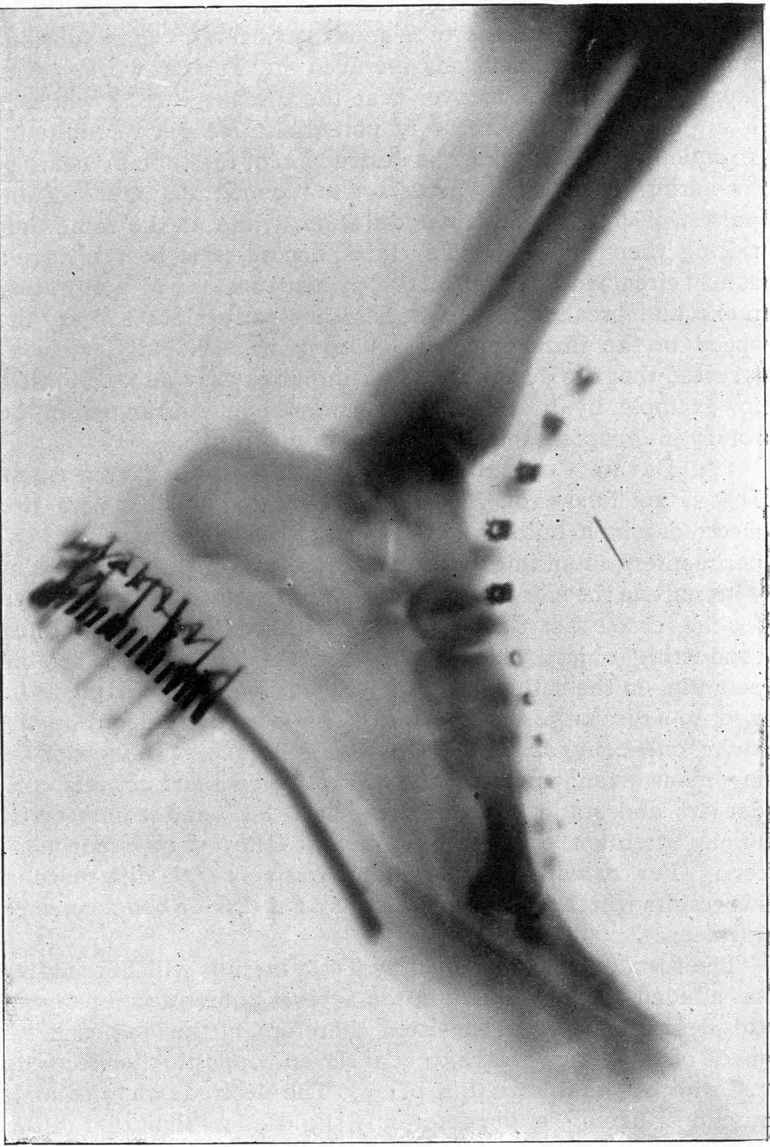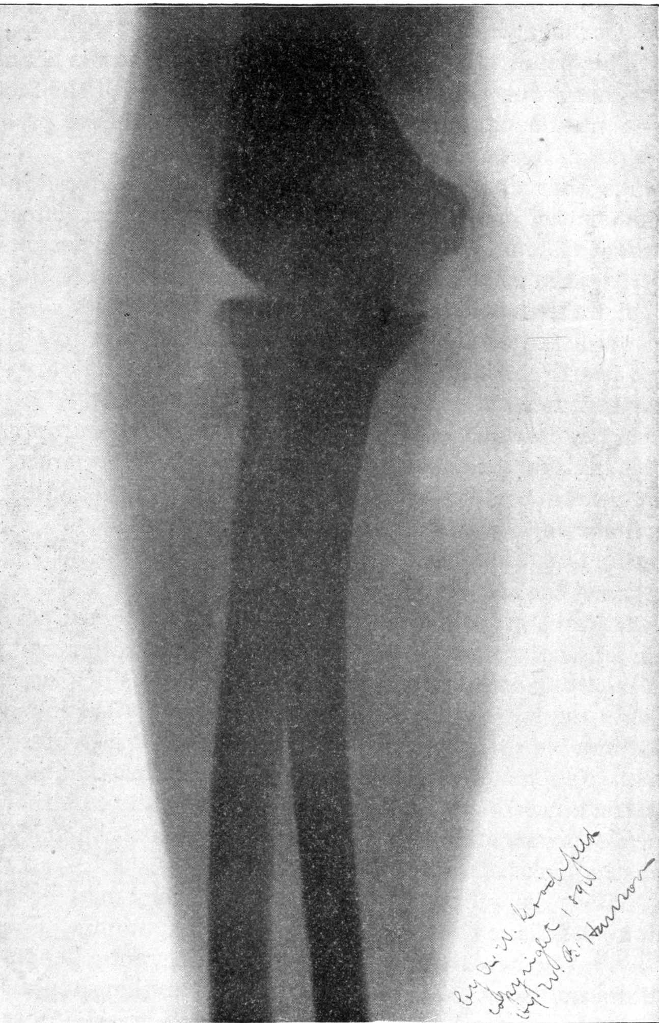 The art of sciagraphy, more nearly, as every month passes, becomes developed by means of improved apparatus, screens, photographic plates and other elements which at present are only dimly predicted. Nevertheless, how can a better sciagraph of bones, showing their thickness and porosity, be desired than that reproduced on page 177, and taken by Prof. Arthur W. Goodspeed, and representing a club foot of a child? In the race to excel in this new art, no one, to the author’s knowledge, has surpassed Prof. Goodspeed, of the University of Penn., considered jointly from the standpoints of priority, superiority, quantity and variety. Dr. Keen, L.L.D., Professor in the Jefferson Medical College, of Philadelphia, stated (Inter. Nat. Med. Mag., 179June, ’96) that Prof. Goodspeed “has far eclipsed all others in these most beautifully clear sciagraphs.”
