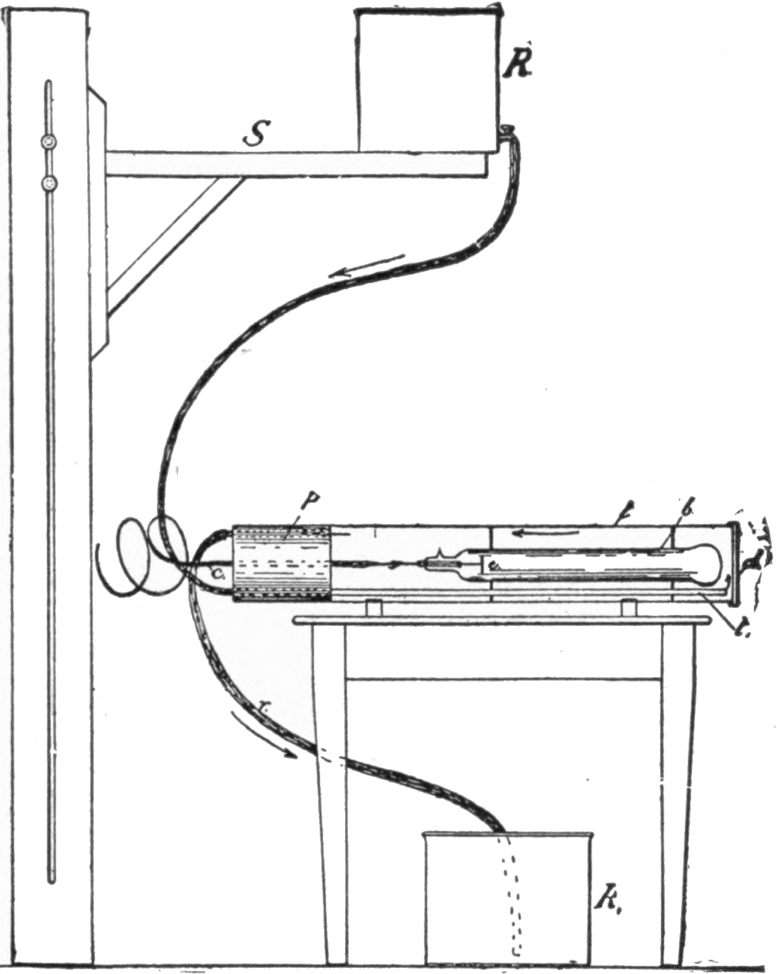 T. C. Porter made some experiments at Eton College, (Nature, June 18, ’96,) which confirmed the above results, finding that the radiometer is entirely inert to the Roentgen rays, whether they be from a properly electrically screened hot or cold tube. He distinguished between the caloric conditions, for he found that, not only will reduction of temperature vary the penetrating power of the rays, § 135 and 152a, but also will an increase of temperature.