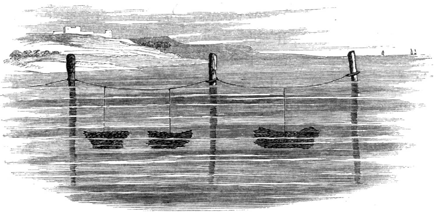 [14] Mr. Ashworth, in a communication to Mr. Barry, one of the Commissioners of Irish Fisheries, says: “No charge is made for the oyster-parks, but each plot is marked and defined on a map, and the produce is considered to be the private property of the person who establishes it. They vary in size twenty or thirty yards square, the stone or tiles are placed in rows about five feet apart, with the ends open so as to admit of the wash of the tide in and out.”