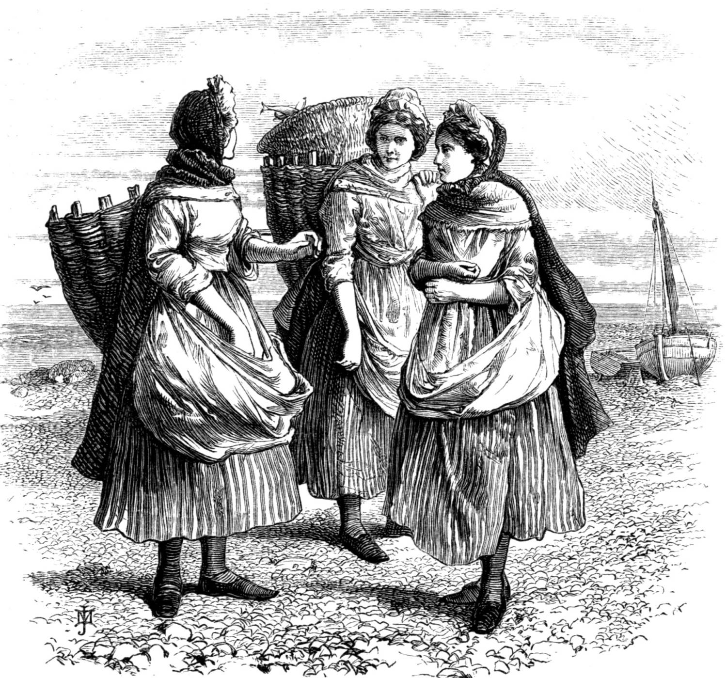 It may be further remarked, that these Nereids are punctillious among themselves, and observe different ranks according to the commodities they deal in. One experienced dame was heard to characterise a younger damsel as “a puir silly thing, who had no ambition, and would never,” she prophesied, “rise above the mussel-line of business.”—Note to Antiquary.