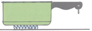 Correct flame size is determined by pan size, pan material, what you are cooking and whether you are cooking with liquid. Even when cooking in a liquid or with a pan which conducts heat well, you may want to lower the flame to adjust for pan size (see sketch below). The flame should never extend beyond the outer edge of the utensil. Any higher flame is wasted heat.