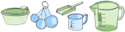 1. Always set liquid measuring cup on level surface and fill to desired mark.