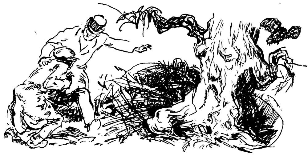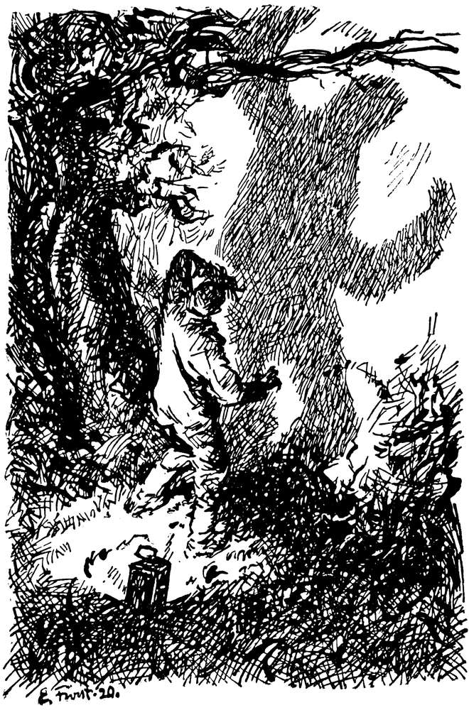 Da legte sich eine schwere Hand auf seine Schulter, er ließ vor Schreck den Schirm fallen, denn blendende Helligkeit war mit einem Male um ihn. Dann riß er weit und erstaunt die Augen auf.